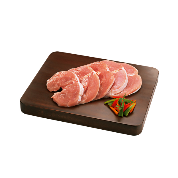Cortes de pavo obtenidos de la pechuga especial marinada y congelada.